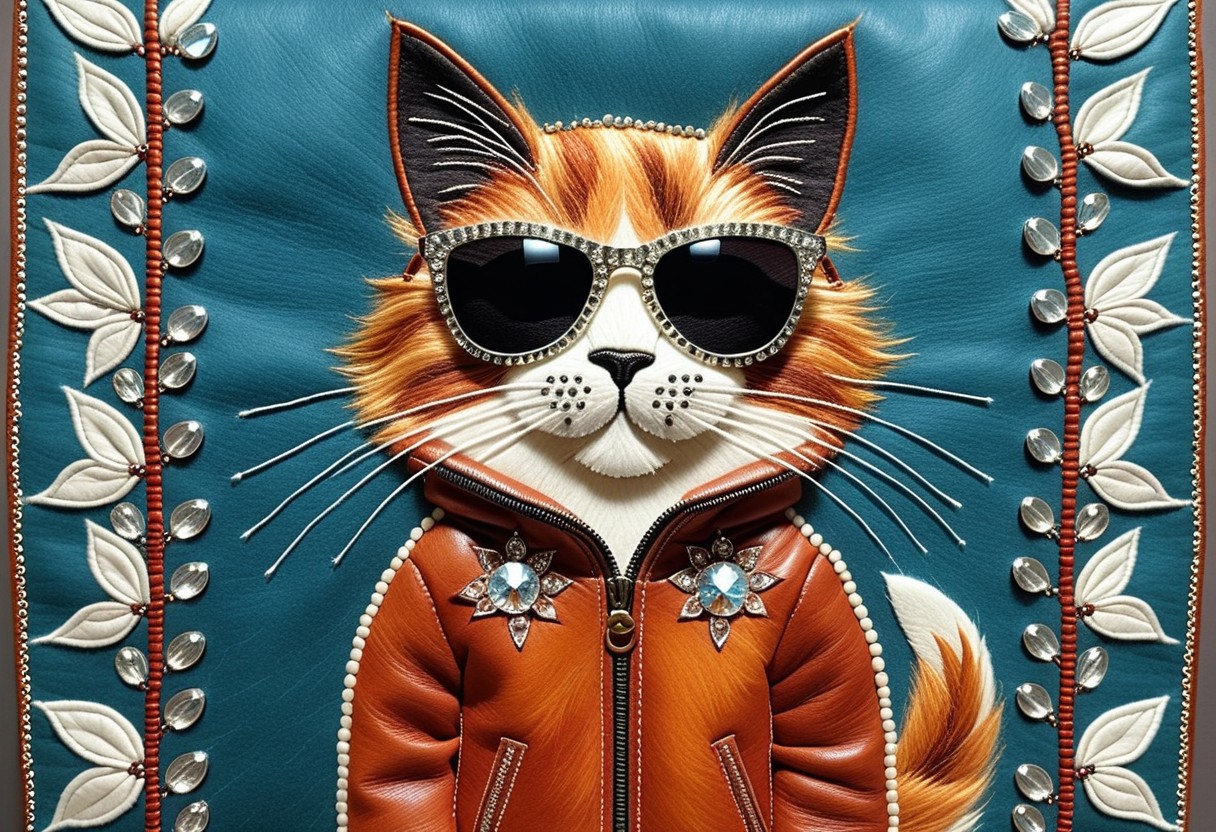 A Cute, (cs-l3ath3r), (cat wearing sunglasses), solo, winter, 4k, high detail, high quality, realistic, full body,