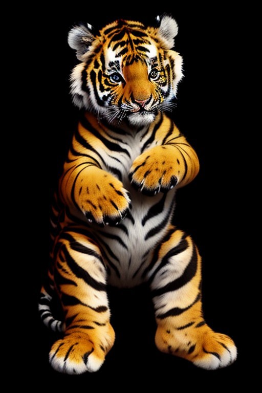 (black background, savannah),, (((tiger cub, full body shot)))