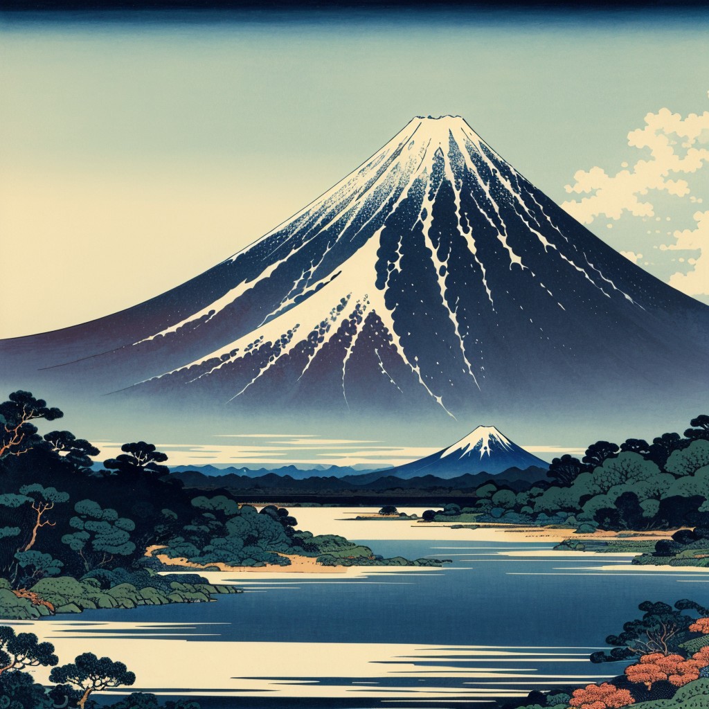 (masterpiece, top quality, best quality, official art, beautiful and aesthetic:1.2), Mount Fuji, 葛飾 北斎, katsushikahokusai, <lora:KatsushikaHokusai:0.5>