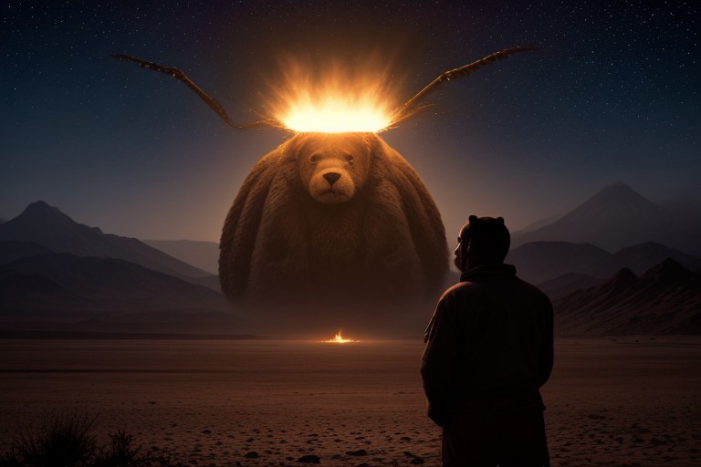 (((big text))), (((teddy bear))), (((scorpions))), (((area 51))), ufo, volcano, apocalypse, fire, (night desert background), cbvcftvyry5y