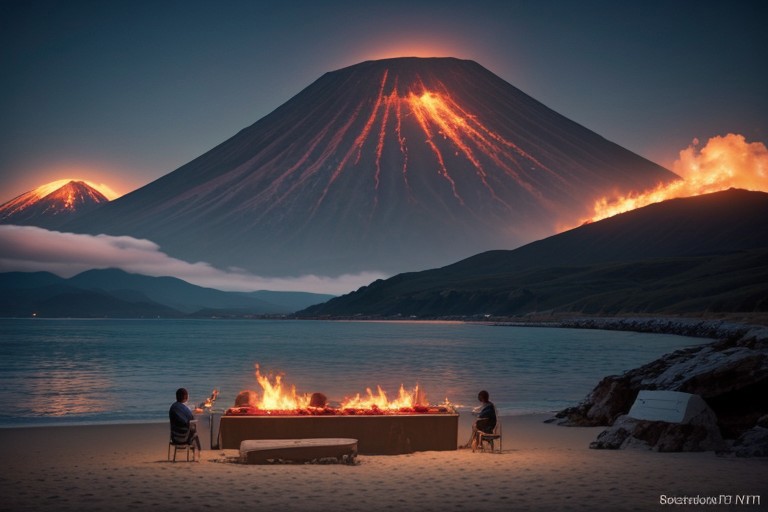 (((hotdog))), hotdogs, fire, (big text))), (((area 51))), ufo, mountain, volcano, apocalypse, fire, (beach background), tny7t67nt6