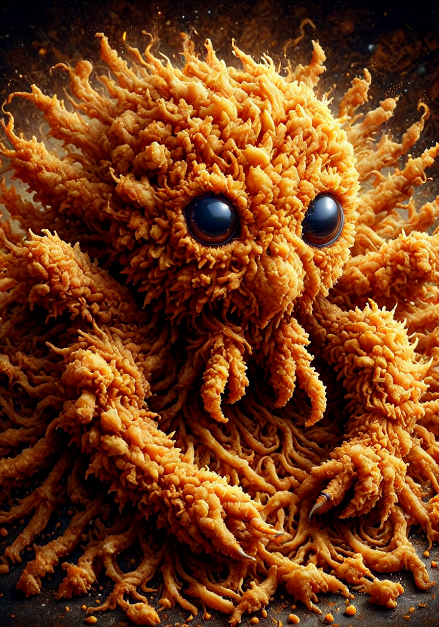 masterpiece, 4k, 8k, extremely detailed, sharp outlines, high contrast, fine details, intricate, photo,no humans, crunchy, spider, made of deep fried & crispy breading,, , DFC<lora:Deep-Fried_Crispy_Style_World_Morph_V2.safetensors:1.0:1.0>