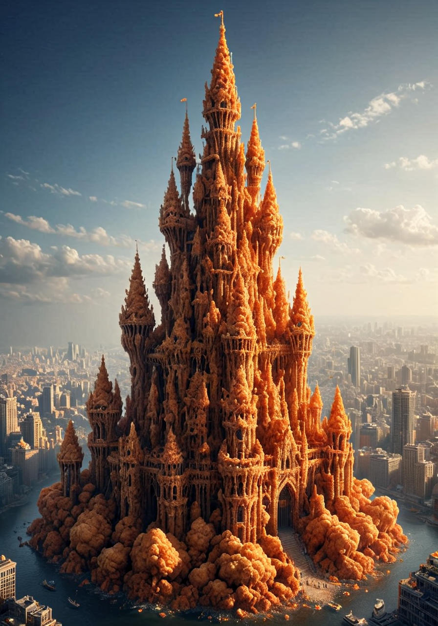 masterpiece, 4k, 8k, extremely detailed, sharp outlines, high contrast, fine details, intricate, photo,no humans, crunchy, skyscrapper, made of deep fried & crispy breading,, , DFC<lora:Deep-Fried_Crispy_Style_World_Morph_V2.safetensors:1.0:1.0>