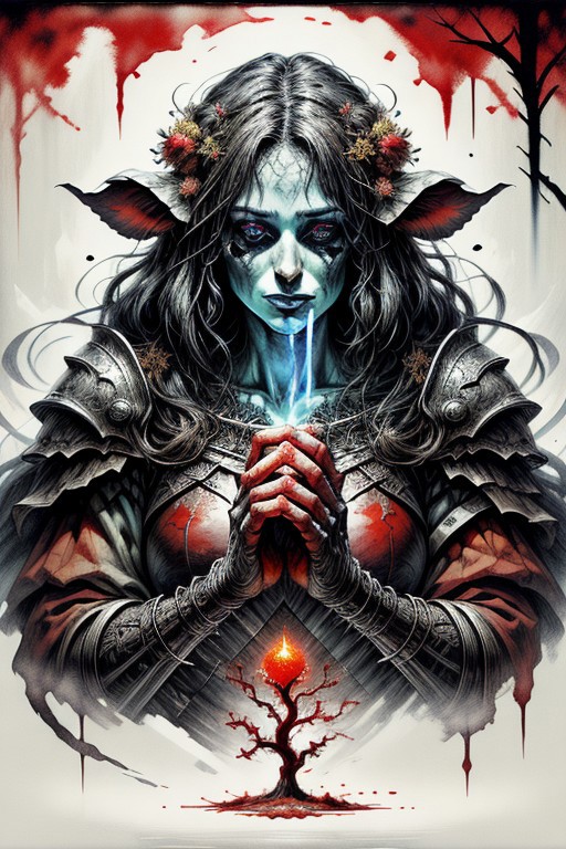 score_9, score_8_up, 8, score_7_up, score_6_up, solo, fantasy style, masterpiece, 8k, dynamic pose, masterpiece, best quality, (realistic:0.35), traditional media, watercolor /(medium/), red blob, red puddle, red oil, multiple hands, red background, black theme, outdoors, tree, forest, black tree, hills watercolor, ink and pen, character focus, 3d, Kentaro Miura Style, BREAK oil painting, BadDream, druid, negative_hand, NEG_EMBED_STABLE_YOGI_V3, FastNegativeV2, AissistV2 (detailed:1.3), (sharp focus:1.1), medieval style, (expressive face:1.2),, (intricate attire:1.1),