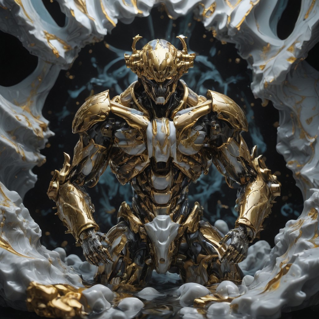 Liquid Marble, Golden Gear, Cyber-Mechanical Precision, High-Tech Gloss, Ultradetailed