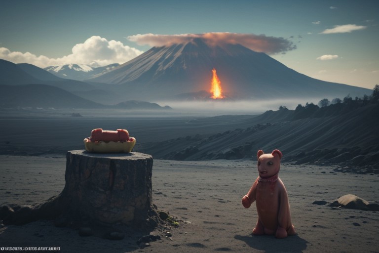 (((hotdog))), hotdogs, fire, (big text))), (((area 51))), ufo, mountain, volcano, apocalypse, fire, (beach background), 5555555555555555bse5y6tber