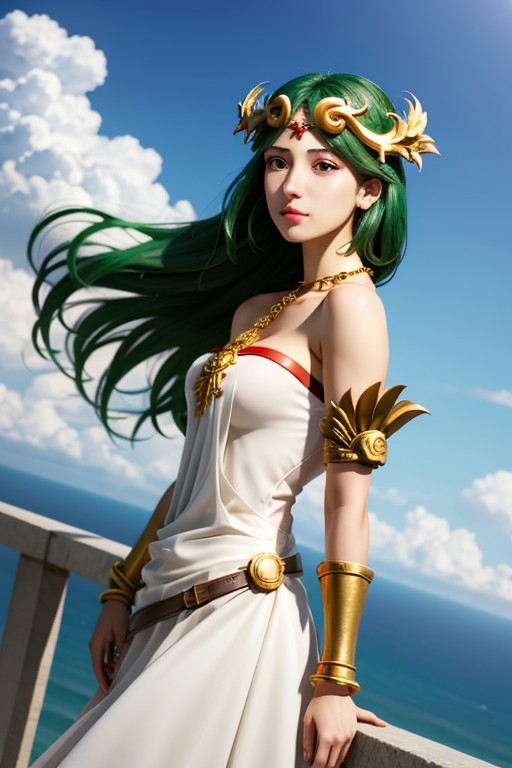 core_9, score_8_up, score_7_up, source_anime, <lora:palutena-trailer-ponyxl-lora-nochekaiser:1>, palutena, long hair, bangs, very long hair, green eyes, green hair, afro, big afro, parted bangs,, dress, bare shoulders, jewelry, necklace, white dress, strapless, tiara, strapless dress, armlet, neck ring, gold,, floating city, sky, futuristic, architecture, clouds, shocked, closed mouth, electric, standing,, looking at viewer, solo,, dutch angle, cowboy shot Palutena lora : 0.7, palutena, <lora:palutena_v1:0.7>