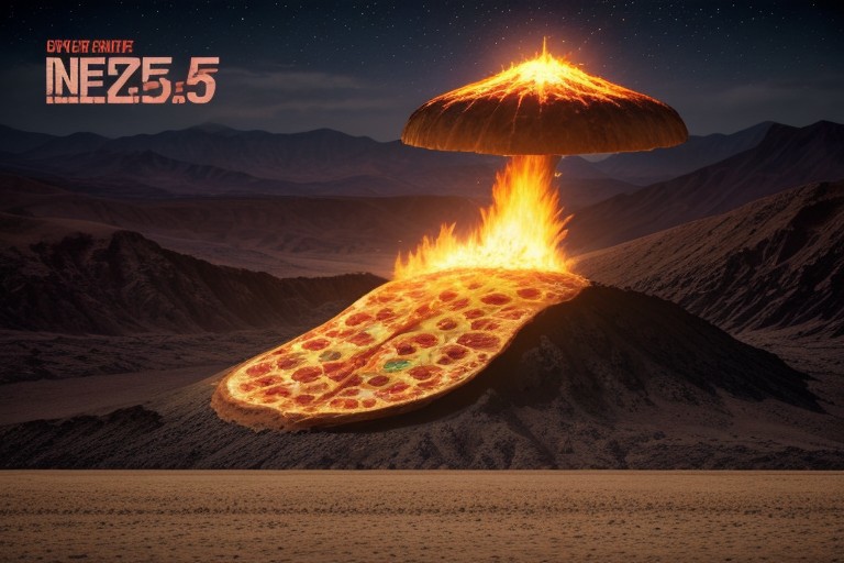 (((big text, text))), (pizza), flying pizza, hamburger, hotdog, burrito, banana, apple, , fire, (big text))), (((area 51))), ufo, volcano, apocalypse, fire, (desert background), 56756n7bnfnt6nfhnt6666666666