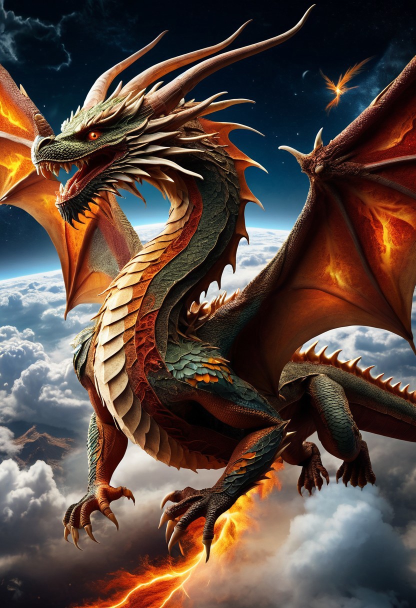 ((herbs_morf:1.5))made of variety of spices, digital art images, beautiful, fantasy, and complex, detailed portrait of a dragon. Flying in the sky, flying:1.4, wings spread wide, colorful, beautiful, closeup shot, flash, lightning, bolt sea, night time, cloudy, masterpiece, photorealistic, highly detailed,