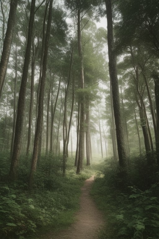 outdoors, summer forest, lush trees, wind