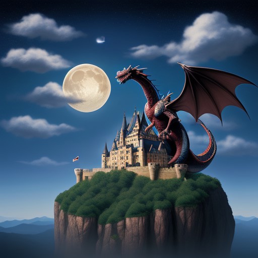 dream land,fantasy,,dragon,sky,moon,sun,star,castle