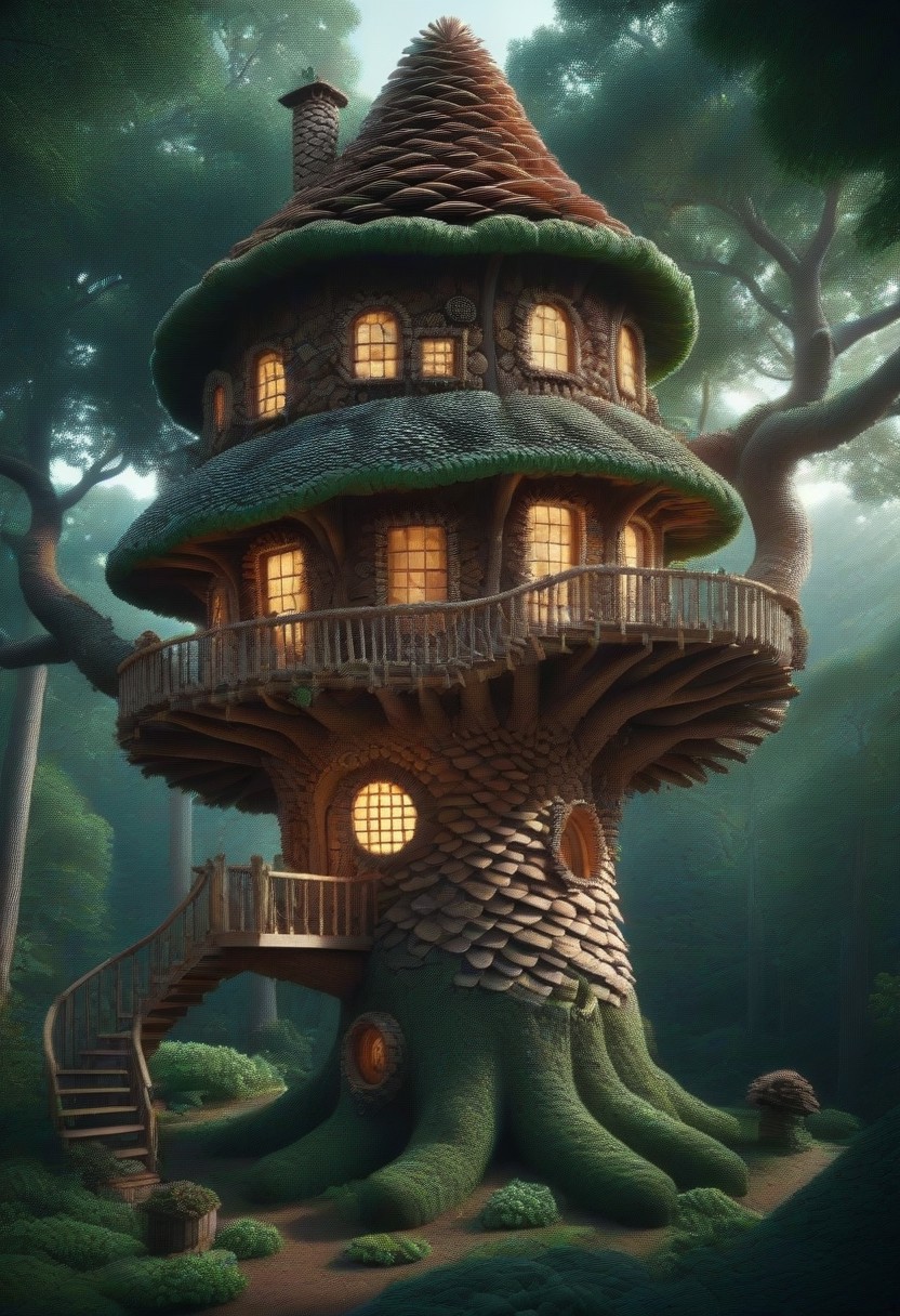 score_9, score_8_up, score_7_up, intricate details, Photography of a a treehouse built in the canopy of a large tree, maid pinecone style. mad-shingles, shingles, landscape cabbage,cjdl, whimsical, imaginative, an epic image cinematic illumination, volumetric lighting, full-picture <lora:mb_styles_comtoon:1>