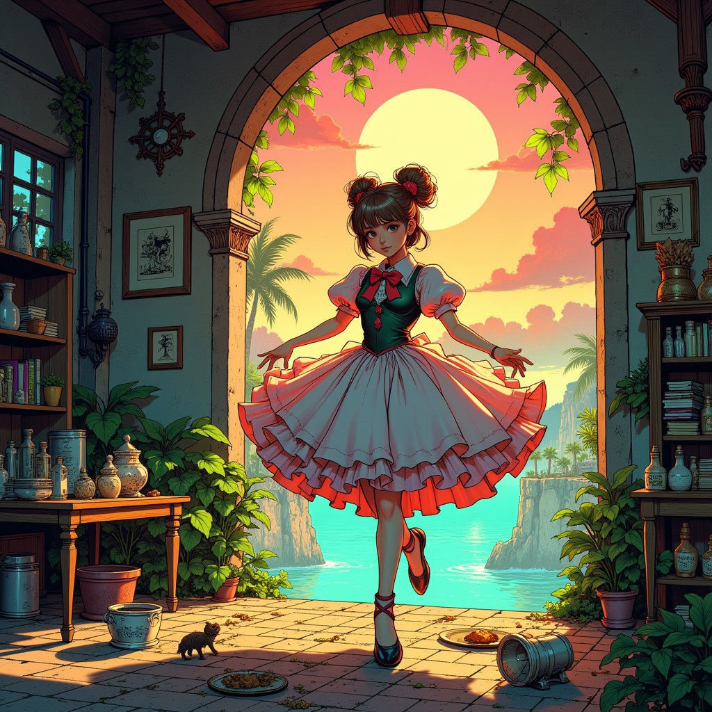 Video Game Art Hygge dynamic lighting heroengine engine street art polaroid transfers line art, Ivory, Emerald, Sapphire, Gold, Silver, Bronze, Topas, Amethyst, Mosaic, ,,,,,Black Carriage,crumhorn,Salvage Scout,Lightning Runner, Twirling Tutu: A fluffy, layered skirt worn by ballerinas, creating a graceful silhouette.,Walnut Wood: Hardwood with a dark brown color, used in furniture and decorative arts.,Iron: A metal with a grayish appearance, used in tools, weapons, and construction.,Eggshell: The white outer shell of bird eggs, used in art and decoration., Mosaic Tiles: Small pieces of colored glass, stone, or ceramic arranged to create images or patterns, magic Crater, tropical weather,
