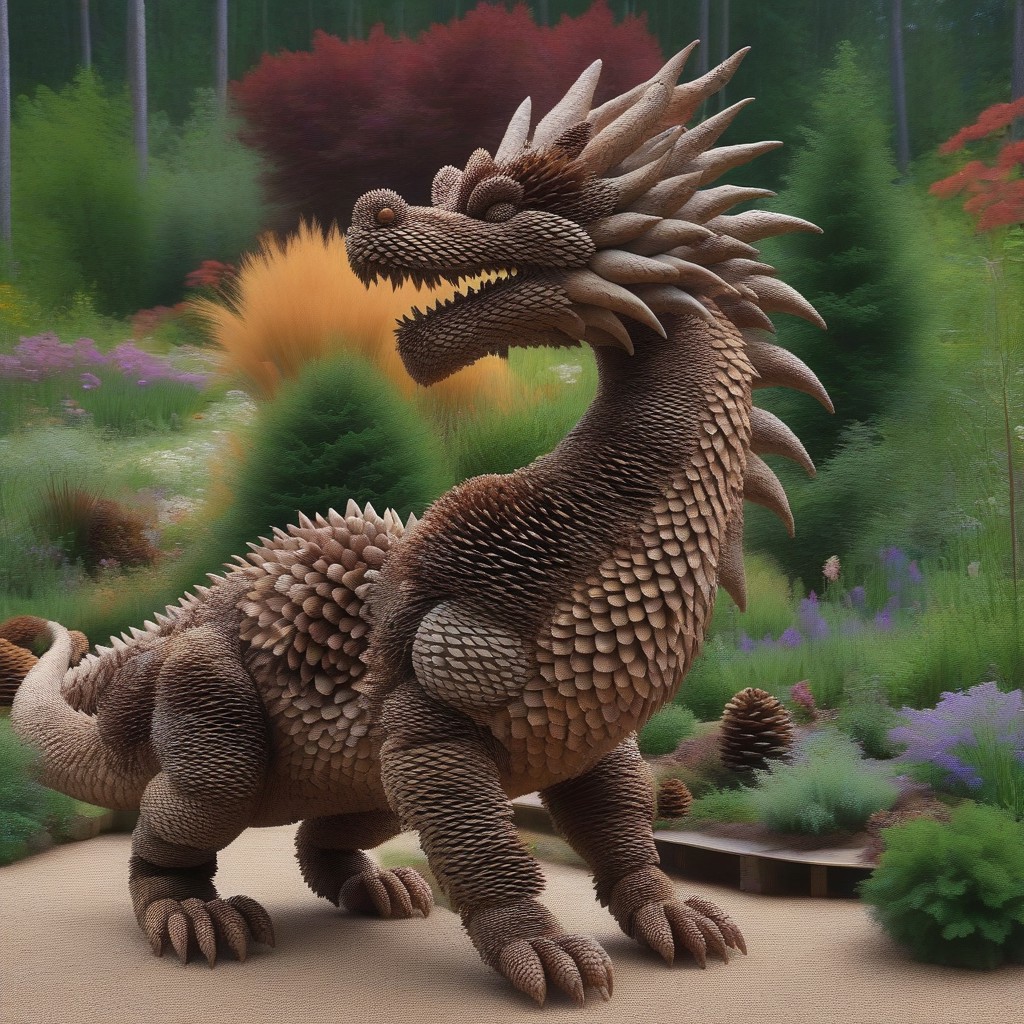 (rating :safe), (rating:pg),high quality,masterpiece,high quality,masterpiece,absurd resolution,amazing aesthetic ,dragon,made of pinecone,ral-pinecone,outdoor,