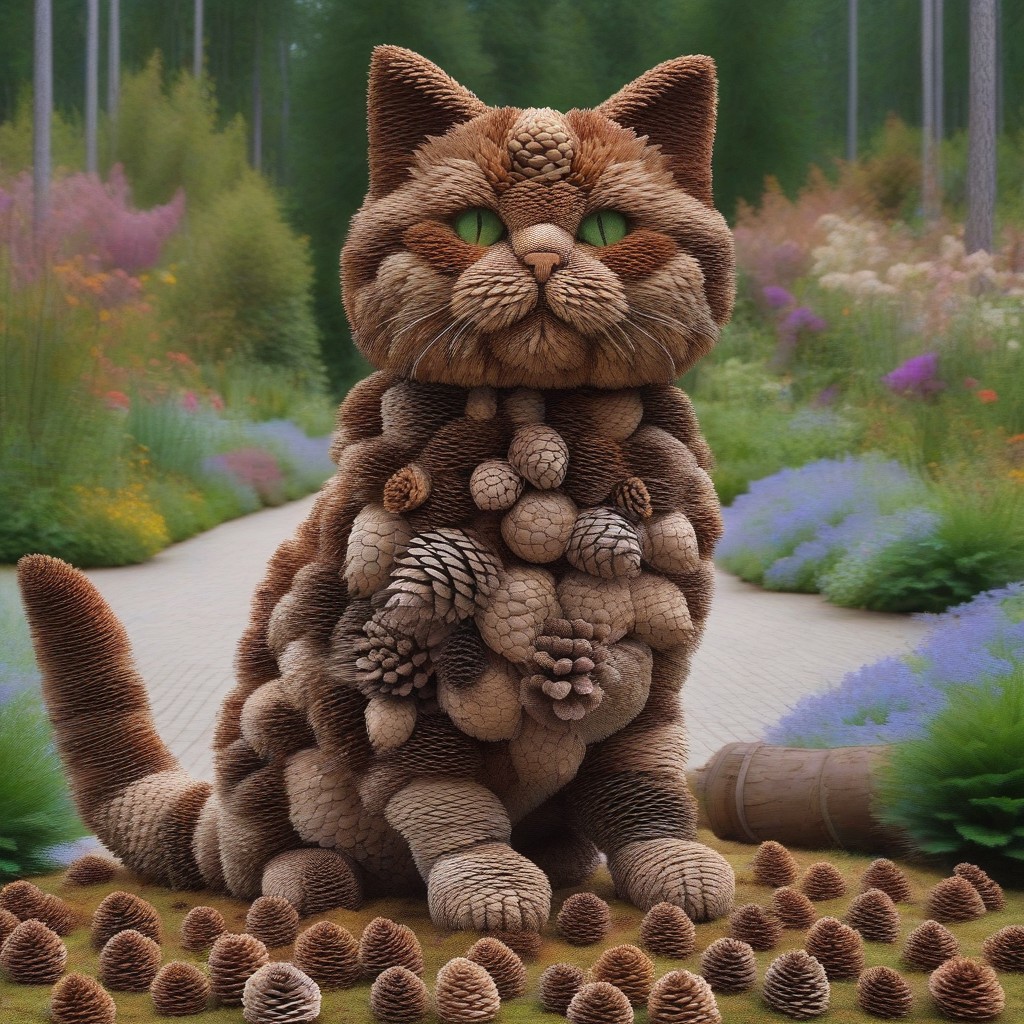 (rating :safe), (rating:pg),high quality,masterpiece,high quality,masterpiece,absurd resolution,amazing aesthetic ,cat,made of pinecone,ral-pinecone,outdoor,