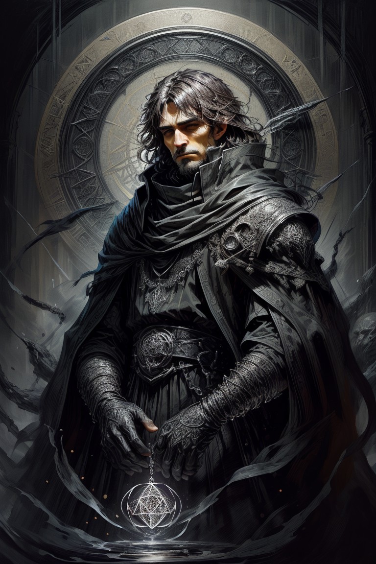 score_9, score_8_up, 8, score_7_up, score_6_up, solo, fantasy style, masterpiece, 8k, dynamic pose, 20 y.o, <lora:Fantasy_Classes_SD:1>, masterpiece,best quality<lora:xl_more_art-full_v1:0.5><lora:add-detail-xl:1.0><lora:aesthetic_anime_v1sXL:1.0><lora:polyhedron_all_sdxl-000004:0.40><lora:extremely_detailedXL:0.50><lora:EnvyAwesomizeXL01:0.50><lora:SDXLFaeTastic2400:0.30><lora:ral-dissolve-sdxl:0.20><lora:linquiveraXL:0.20><lora:DisturbiaXL:0.20><lora:ClassipeintXL2.0:0.20><lora:AnalogRedmondV2-Analog-AnalogRedmAF:0.20>he weaknesses of enemies:1.5>assassin,member of the League of Shadows, cuts a daunting figure with his enigmatic presence. Clad in a flowing black cloak adorned with intricate golden motifs and a touch of pristine white fur at the collar, he exudes an aura of sinister elegance. Dressed in a form-fitting black leather ensemble with golf accents.His silver hair, a striking contrast against the darkness of his attire, hints at the wisdom and experience that belies his youthful visage.In his hand, he wields the Whispering Shadowblade, an obsidian-black dagger adorned with mesmerizing silver runes that seem to writhe and shift, imbued with an eerie, otherworldly allure. The weapon's curved, serpentine blade gleams with an ethereal sheen, BREAK oil painting, BadDream, negative_hand, NEG_EMBED_STABLE_YOGI_V3, FastNegativeV2, AissistV2 (detailed:1.3), (sharp focus:1.1), medieval style, (expressive face:1.2),,