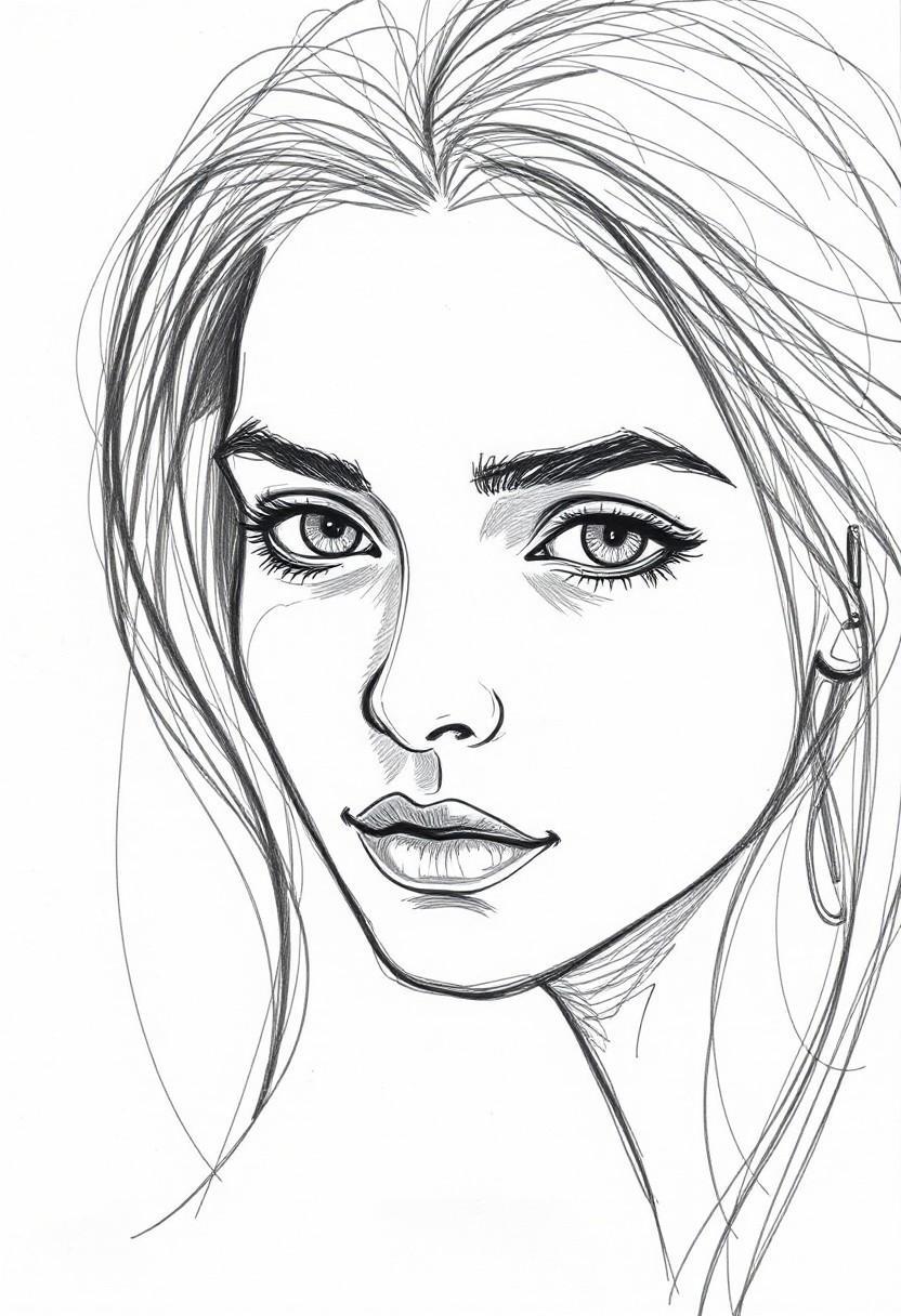 sketch of a woman's face, expressive line-work, in the style of beautiful portraits --ar 35:64 --stylize 750