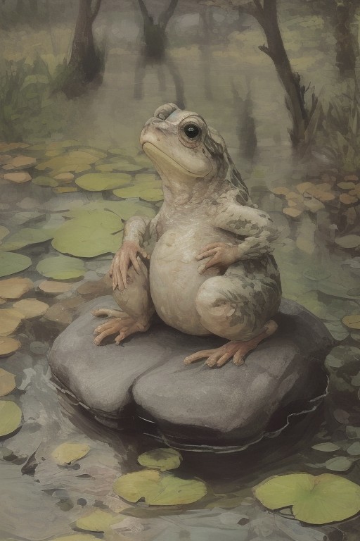 A plump beige frog with a laid-back expression, sitting on a moss-covered rock by a tranquil pond, saying "It's Buzznesday, my dudes" in a bold, comic-style font floating above him. The scene features calm water with a few lily pads and distant trees reflecting off the surface. The environment is peaceful and natural, with soft sunlight casting warm highlights across the landscape. The mood is humorous but relaxed, with a sense of lazy contentment. Cartoon-style illustration with soft shading and smooth, simple lines, emphasizing a light, casual feel
