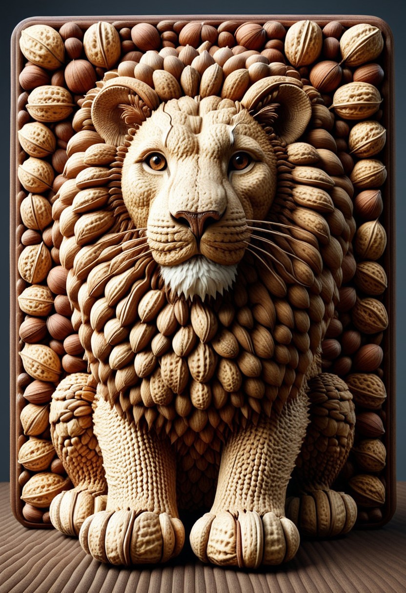 (rating :safe), (rating:pg),high quality,masterpiece,high quality,masterpiece,absurd resolution,amazing aesthetic,made of wallnut,made of peanut,nutstylesnut, lion