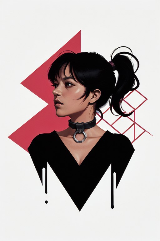 close up, a woman wearing a collar, long black hair with streaks of pink, princess bangs, dual ponytails, solid pink background <lora:RingBondageCollar:1>, Vector art, Vivid colors, Clean lines, Sharp edges, Minimalist, Precise geometry, Simplistic, Smooth curves, Bold outlines, Crisp shapes, Flat colors, Illustration art piece, High contrast shadows, Technical illustration, Graphic design, Vector graphics, High contrast, Precision artwork, Linear compositions, Scalable artwork, Digital art