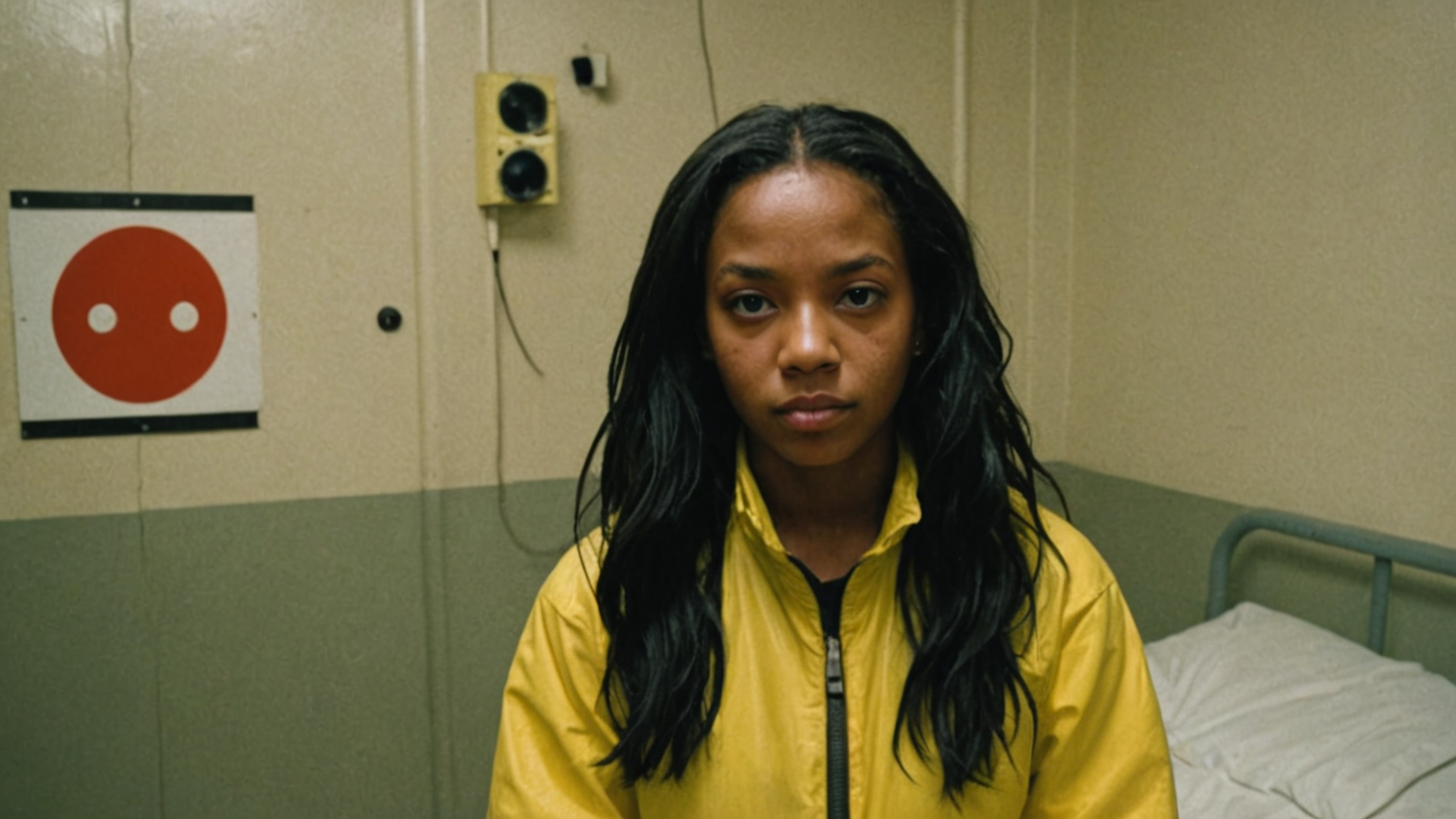 Trinidad and Tobago girl, Hazmat suit, candid pose, cute expressions, inside Trinidad and Tobago nuclear bunker bedroom, Trinidad and Tobago style nuclear bunker, looking into camera, detailed, (analog film grain:0.5).