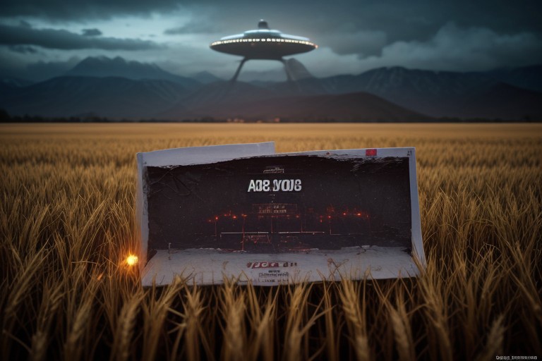 (cbu65f((big text))), (((area 51))), ufo, apocalypse, war,, bullets, gun, rpg, blood, fire, waste, trash, (wheat field background), building, blood, fight, journal cover, text, (((big text))) r567546b47n547
