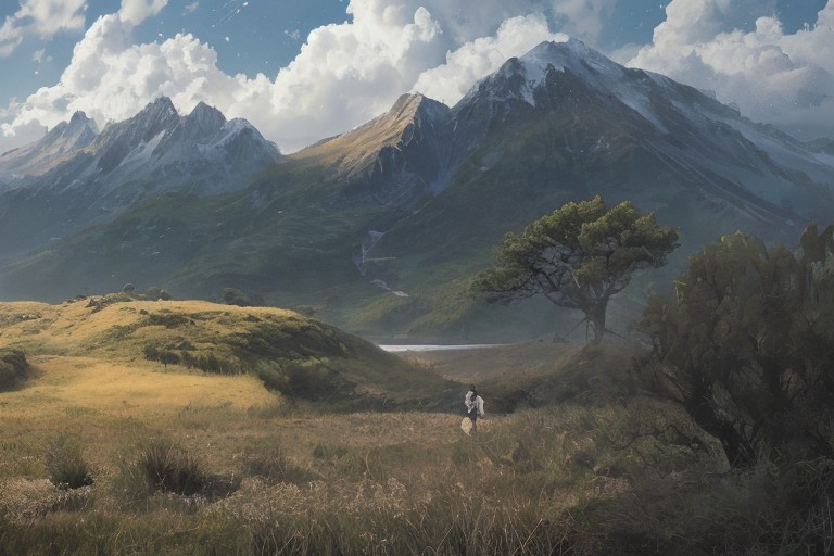 scifi scenery, outdoors, scenery, tree, flower, sky, day, nature, mountain, grass, starry sky, string of flags, landscape, field, fantasy, forest, cloud, 1girl, photorealistic, rainy day, umbrella, <lora:XL-futurism-extraordinaire:1>