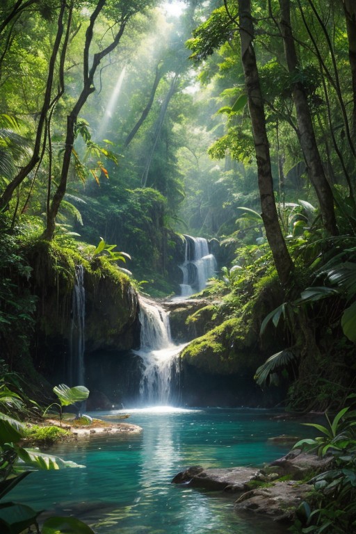 RAW photo, carribean island, delicate jungle grove, wild nature, picturesque scenery, enchanting sunrays, beautiful sky, majestic landscape, pristine vegetation, desolate atmosphere, morning island glade, blue water, jungle lake, photorealistic, masterpiece, 64k, UHD, ultra detailed, vivid colors, high quality, sharp focus