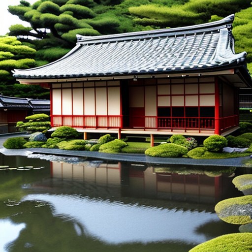 photo, a model of a japanese style house with a pond (IsoJapan style:1) <lora:djzIsoJapanV21:1>