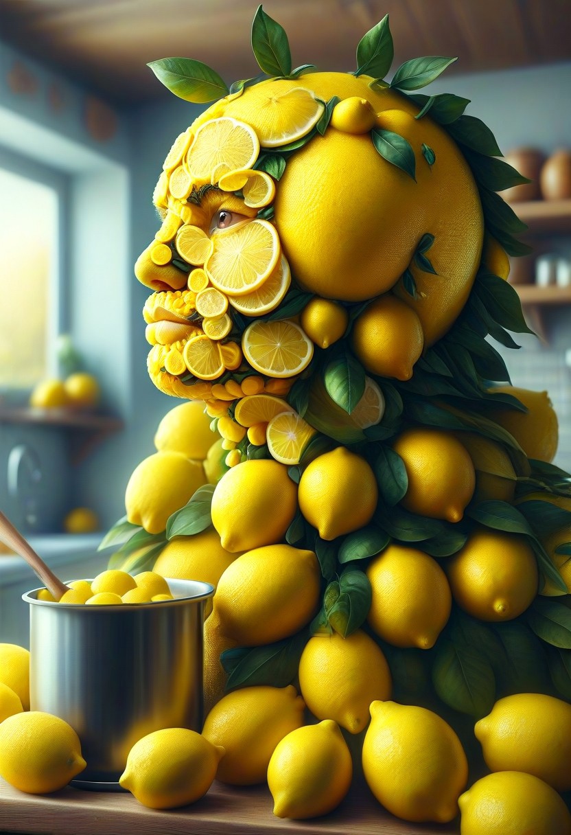 warrior made of lemons, standing in kitchen, using a mixer, mixing lemons, rating_safe, wl_lemons, sdxl_fixl-art, masterpiece, best quality, detailed face, detailed eyes, 4k, absurdres, <lora:sdxl_add-detail-xl:1.0>, <lora:sdxl_When_Life_Gives_You_Lemons-000005:1.0>, <lora:sdxl_MJ52_midjourney:0.5>