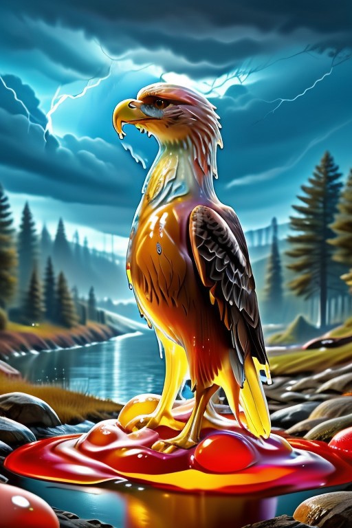 score_9, score_8_up, masterpiece, extremely detailed, best quality, highres, slime-morph, sl1m3d, made of slime, eagle, thunderstorm, scenery