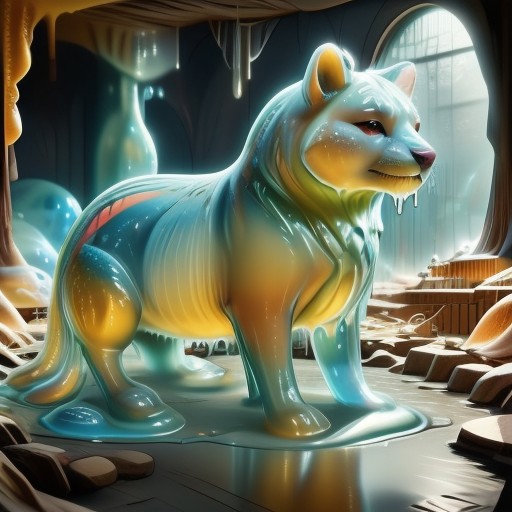fluffy animal made of slime, no humans, score_9, score_8_up, score_7_up, highly detailed, aesthetically stunning, intricate, luminous, amazing aesthetic, intricate details, Digital artwork, surreal style, high-quality, ultra-detailed, 8K resolution, visual masterpiece