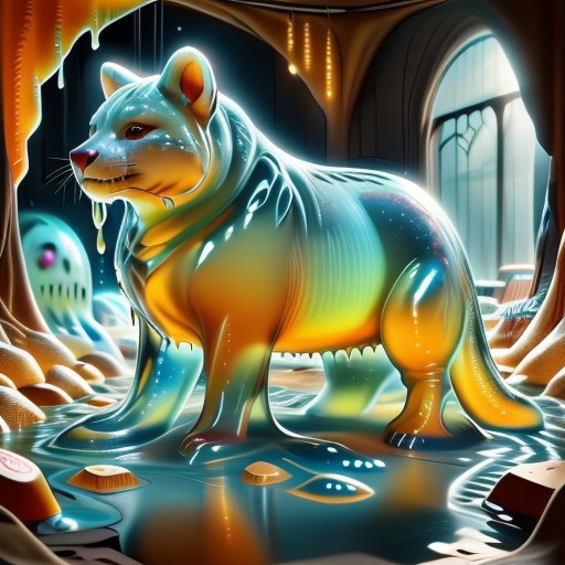 fluffy animal made of slime, no humans, score_9, score_8_up, score_7_up, highly detailed, aesthetically stunning, intricate, luminous, amazing aesthetic, intricate details, Digital artwork, surreal style, high-quality, ultra-detailed, 8K resolution, visual masterpiece