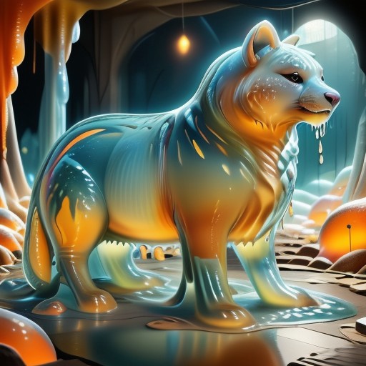 fluffy animal made of slime, no humans, score_9, score_8_up, score_7_up, highly detailed, aesthetically stunning, intricate, luminous, amazing aesthetic, intricate details, Digital artwork, surreal style, high-quality, ultra-detailed, 8K resolution, visual masterpiece