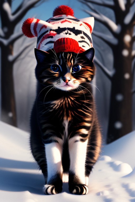 Cute (massive huge eyed), kittens, (wearing beanie hat), winter, 4k, high detail, high quality, realistic, full body,