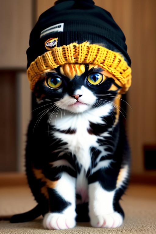 Cute (massive huge eyed), kittens, (wearing beanie hat), spring, 4k, high detail, high quality, realistic, full body,