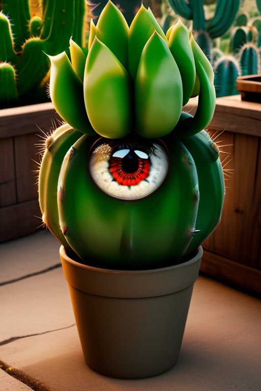 Cute (massive huge eyed), (cactus), solo, spring, 4k, high detail, high quality, realistic, full body,