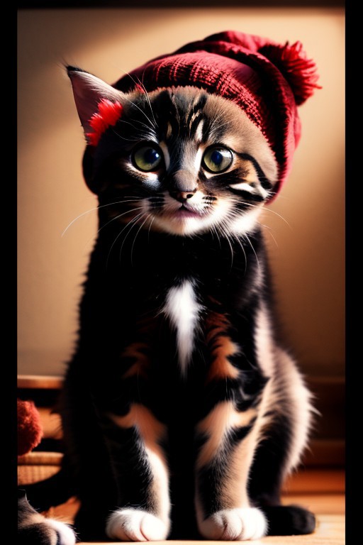 Cute (massive huge eyed), kittens, (wearing beanie hat), spring, 4k, high detail, high quality, realistic, full body,