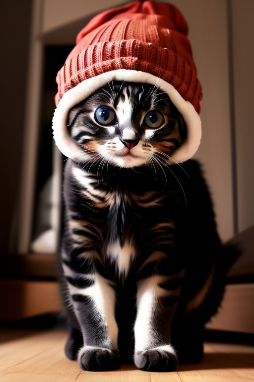 Cute (massive huge eyed), kittens, (wearing beanie hat), spring, 4k, high detail, high quality, realistic, full body,