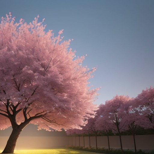 flat illustration of Japanese cherry tree, Masterpiece, High quality, RAW, detailed, volumetric light, dramatic lighting, backlight, plan background, tshirt design, simple background, flat background