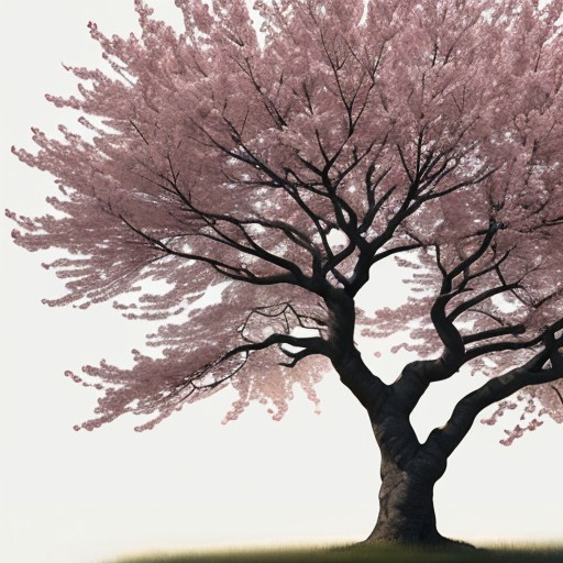 flat illustration of Japanese cherry tree, Masterpiece, High quality, RAW, detailed, volumetric light, dramatic lighting, backlight, plan background, tshirt design, simple background, flat background