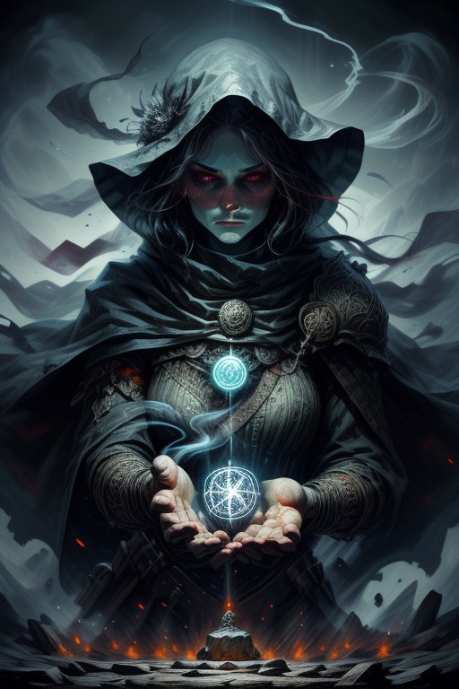 score_9, score_8_up, 8, score_7_up, solo, fantasy style, masterpiece, 8k, dynamic pose, 20 y.o, <lora:Fantasy_Classes_SD:1>, dynamic angle, unusual angle, dynamic, dynamic composition, In the dim, flickering light, a shadowy figure emerges, its presence cloaked in an air of mystery. Slowly, it reaches out toward the hilt of the shattered runic sword, its movements deliberate yet hesitant. The ancient engravings on the hilt begin to pulse faintly, glowing like a dying ember, their light casting eerie shadows across the figure’s outstretched hand. The closer it gets, the air grows colder, heavy with an otherworldly presence. From the jagged break in the blade, spectral wisps begin to unfurl, curling and twisting like smoke, their forms coalescing into ghostly faces etched with agony. Whispers fill the air—soft at first, but rising into a cacophony of tormented wails. The figure’s hand trembles as its fingers hover just above the hilt, as though sensing the weight of the cursed power it is about to claim. Finally, with a sharp intake of breath, the hand closes around the sword. The runes ignite with a blinding light, and the escaping souls recoil, writhing in both fear and fury. BREAK oil painting, BadDream, negative_hand, NEG_EMBED_STABLE_YOGI_V3, FastNegativeV2, AissistV2 (detailed:1.3), (sharp focus:1.1), medieval style, (expressive face:1.2),,