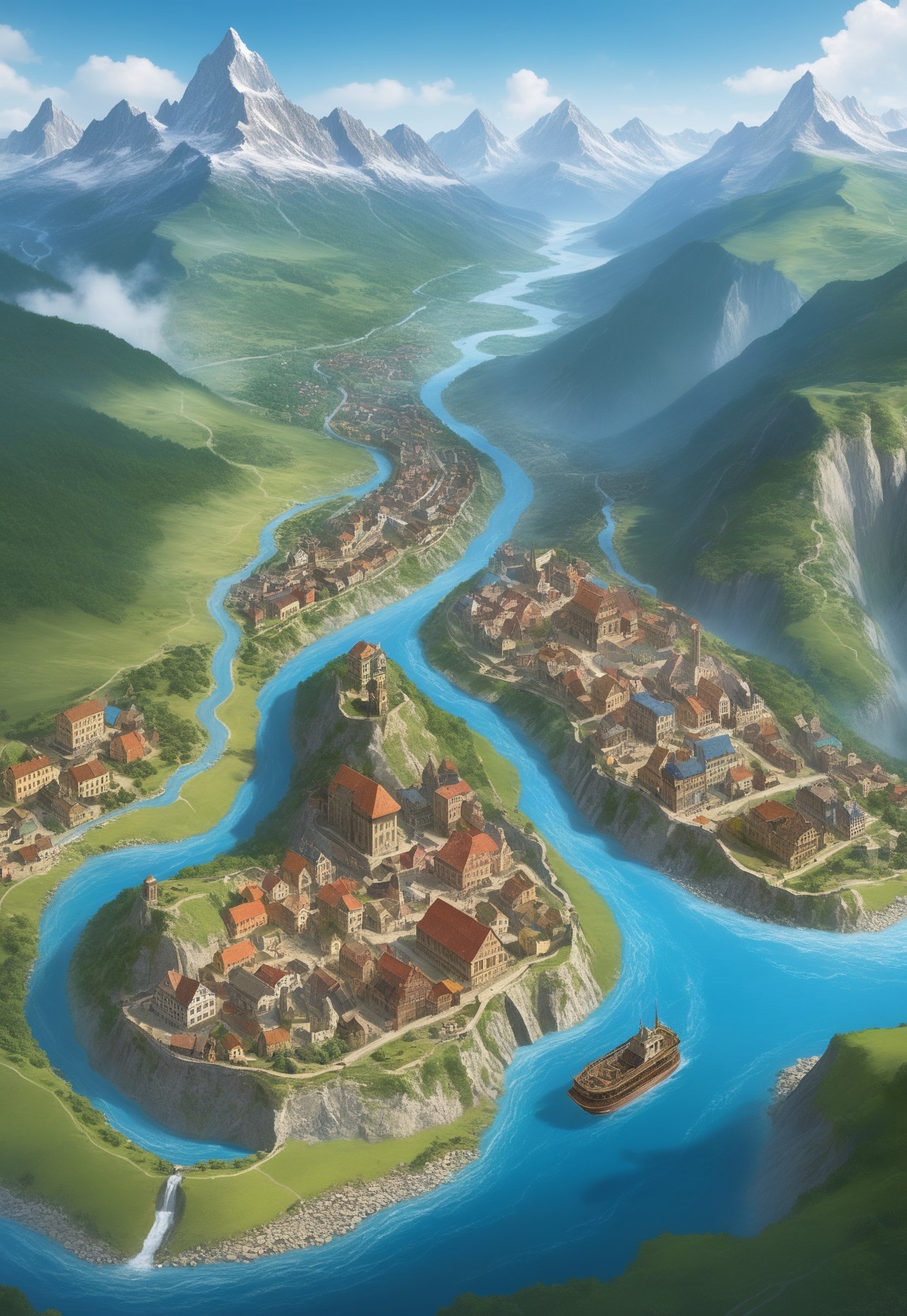 An old map, revived: Rivers flow, mountains grow, and cities are being built before our eyes. <lora:add-detail-xl:1>
