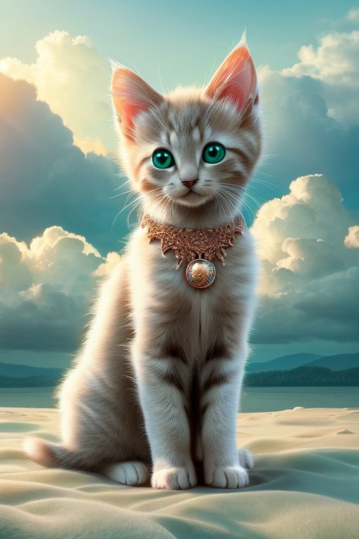 cloud art, cute ornamented animals , fluffy ornamented kittens, ornamented fur, playful puppies, soft lighting, pastel colors, whimsical, dreamy sky, detailed, high contrast, hyper-realistic, serene atmosphere, imaginative, gentle, warm sunlight, high-definition, DonM3lv3s