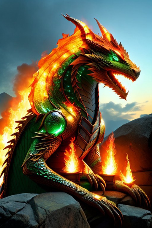 score_9, score_8_up, score_7_up, score_6_up, score_5_up, score_4_up, magma dragonborn, flaming scales, glowing expressive eyes, roaring, bright sunny sky background, magical elements,