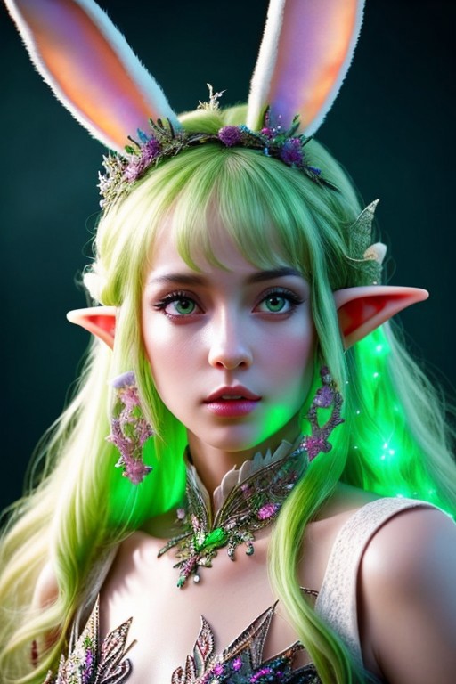 Magical eerie bunny-girl-elf, masterpiece, awesome quality, hyper detailed, DonM3lv3s perfectly detailed beautiful face, pg-rating, ,masterpiece ,amazing quality, best quality,ultra-detailed,8K,illustration, amazing quality, vivid colors, ((source_realistic:1.6)), (score_9_up,score_8_up:1.3),score_6_up,score_7_up, , pg-rating, highly detailed, highly-detailed, best quality, masterpiece, very aesthetic, detailed, Fantasy theme, bunny elf ears, ,, glow, pink and Purple theme, blank background, DonM3lv3s <lora:DonM3lv3s-000008:0.8>