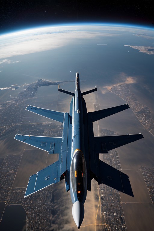 In the shape and style of a yfg-dr0p water drop splash photo of a , A fleet of advanced sci-fi fighter jets soaring through Earth's upper atmosphere, flying in perfect formation. The lead star fighter has a sleek, aerodynamic design with a metallic blue hull, equipped with glowing orange thrusters and high-tech weaponry, including missile launchers and energy cannons. The cockpit is enclosed by a transparent, futuristic glass canopy, reflecting the ambient light from space. The background features a breathtaking view of Earthâs curvature, with scattered clouds below and faint city lights glowing in the distance. The scene is illuminated by a deep blue cosmic glow, with distant stars visible in the background. The afterburners leave behind trails of bright white exhaust as the squadron moves in synchronized precision. The lighting is cinematic, with detailed reflections on the metallic surfaces of the spacecraft. The design is inspired by a fusion of futuristic military aesthetics, cyberpunk sci-fi, and space combat simulations.