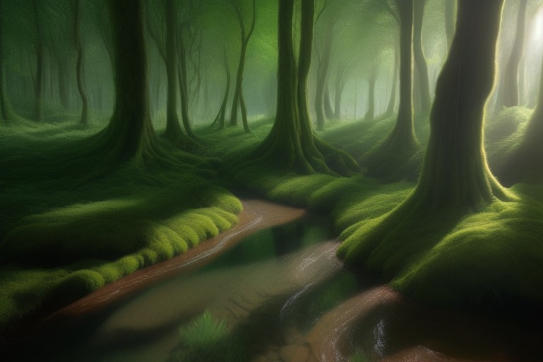 Deep within a sprawling forest named Eldoria, ancient trees whisper secrets to those who listen closely. Sunlight filters through the leaves, creating dappled patterns on the mossy forest floor. Crystal-clear rivers wind their way through the woods, their waters reflecting the shimmering light, DonM3lv3s, elf female, pointed ears