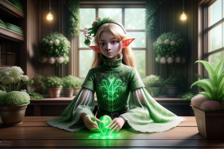 `masterpiece, best quality, highly detailed, ultra detailed, DonM3lv3s, (photorealism:1.2),embedding:lazympos hyper detailed masterpiece, dynamic, awesome quality, DonM3lv3sXL, 1girl, (elf),, kawaii, wide sleeves, high neck, delicate patterns, colorful flowres, glow, indoors, plants, nature,