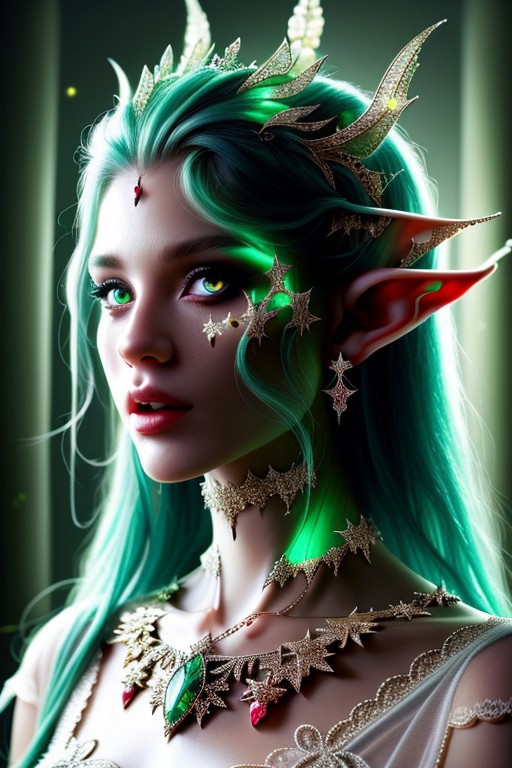 1girl, portrait, DonM3lv3s, elf, pointy ears, priestess, fantasy, glistening skin, crystal, jewellery, necklace, flower, eyelashes, collarbone, beautiful, detailed eyes, shiny lips, looking at viewer, forest (masterpiece, high quality:1.2), none <lora:NonHentaiElf_v10:0.9>